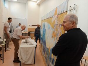 La messe du jeudi soir a débuté par l’entrée en procession derrière une bannière. A l’issue de l’office, à sa demande, Simon s’est vu remettre le scapulaire de saint Joseph. Ce fut un moment riche en émotion, recueillement et joie.